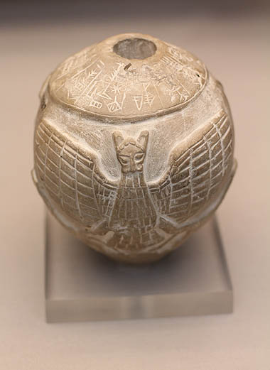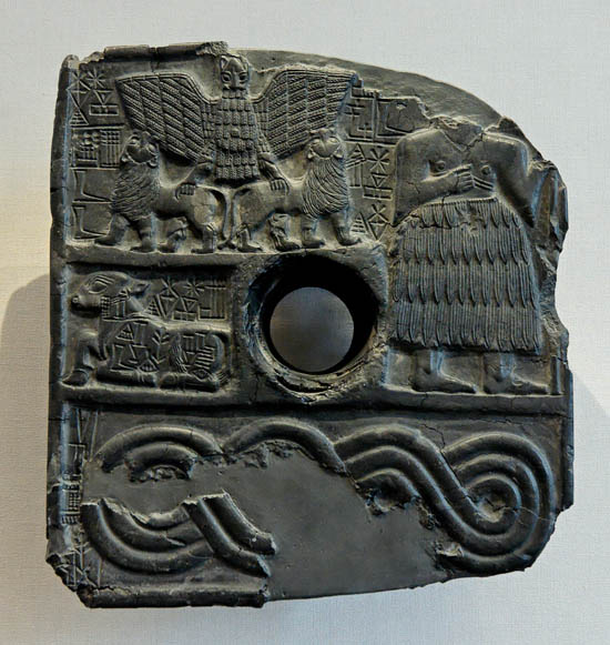 Anzu/Imdugud aparece en la tabla votiva del rey lagashita Entemena, ca. 2400 a.C., Louvre
