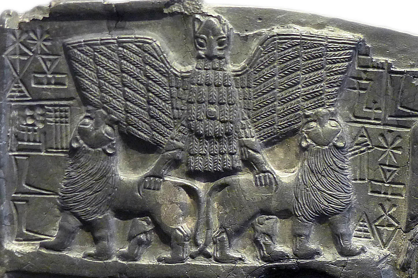 En las aguas, Tiamat-Leviatán; en la tierra, el toro divino —con el que incluso Gilgamesh debe enfrentarse— y en el aire… ahí está Anzu (su nombre original sumerio/acadio: Imdugud), un enorme pájaro de cara de león que habita en las montañas. Según el mito acadio más antiguo que se conserva, Anzu roba las tablas del destino de Enlil —que otorgan a su dueño poder sobre el destino de todos los seres vivos— y es el hijo de Enlil, Ninurta, quien debe derrotarlo y recuperarlas. Con Anzu, también el mundo del caos se rebela contra el nuevo orden, y son los dioses quienes deben someterlo.