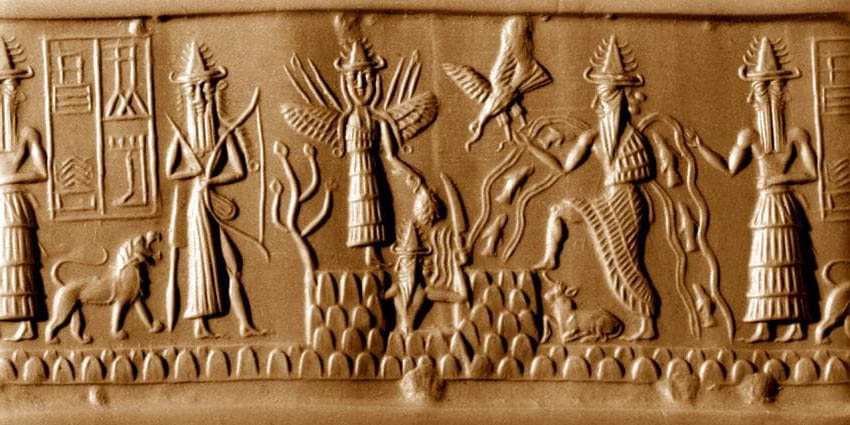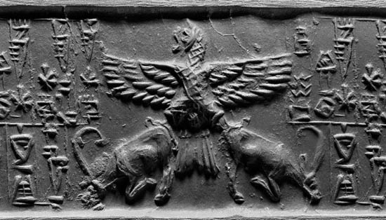 El llamado Sello de Adda, ca. 2300 a.C.: Anzu/Imdugud ante el tribunal de los dioses, British Museum