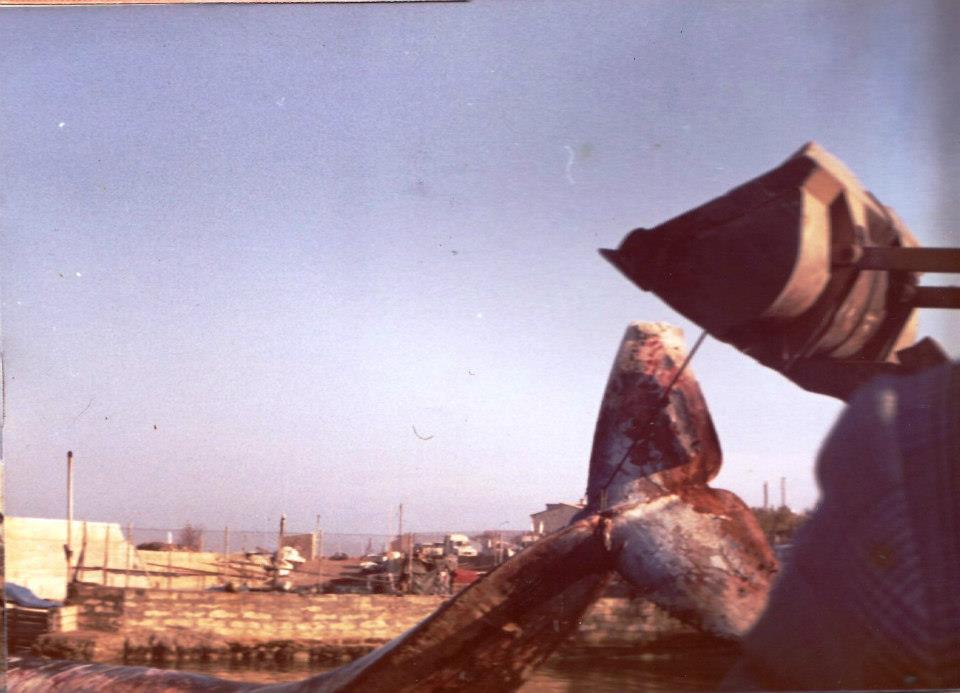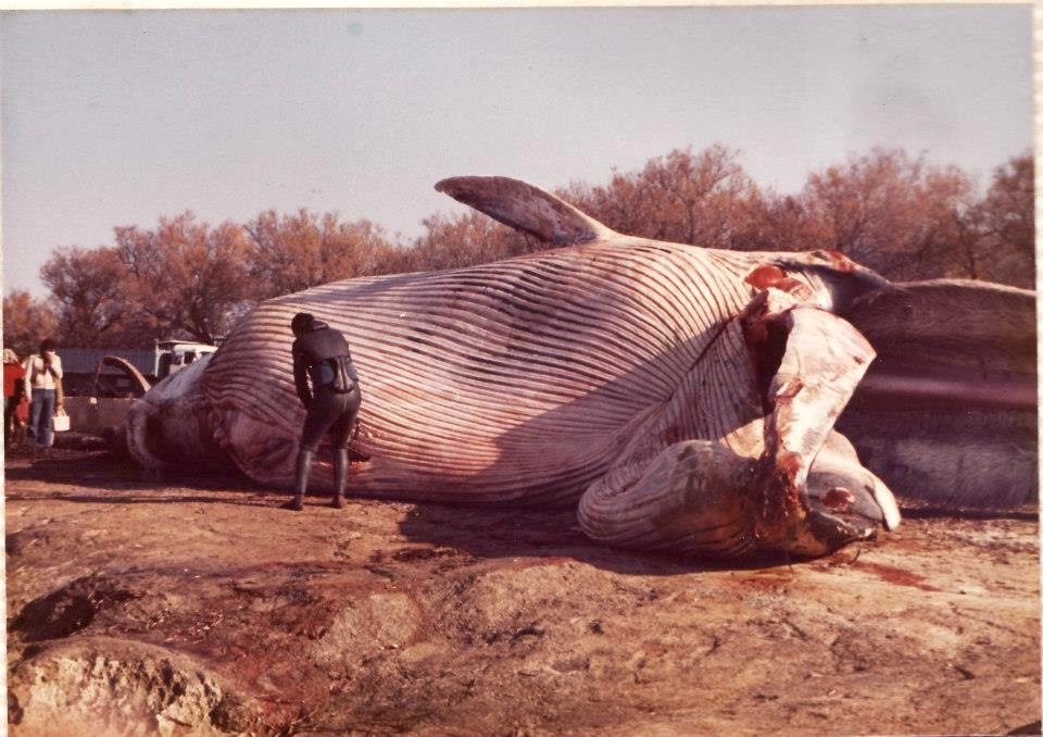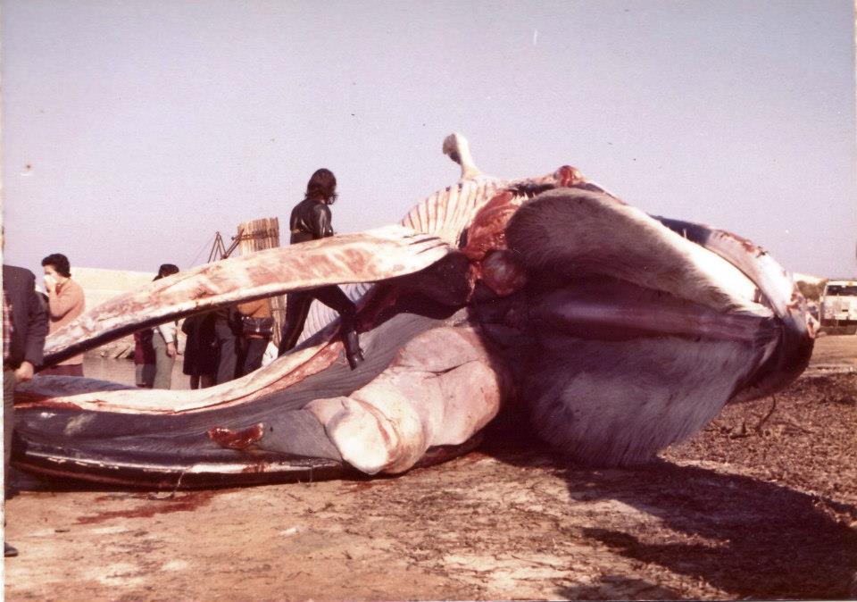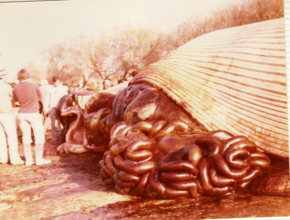 Y llegó el momento de ponerse en serio. Con sierras mecánicas el trabajo se convirtió en una auténtica carnicería. Grandes trozos de carne se llevaban al mar con la idea de que tan buen alimento para los peces beneficiaría la pesca. Unos cuantos se llevaron pedazos de carne para meterlos en el congelador. Otros decían que la grasa era tan buena como la manteca de cerdo.