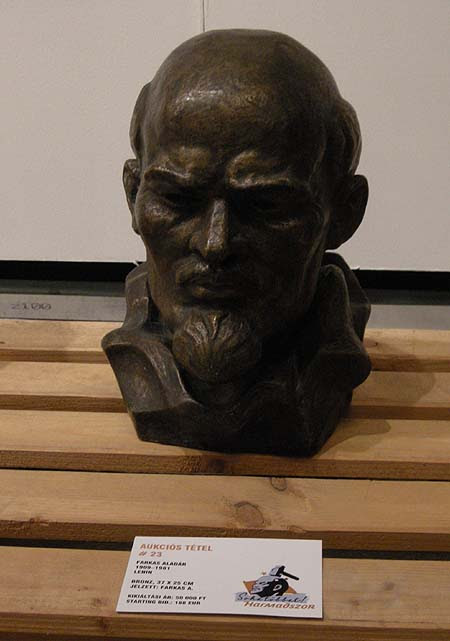 The exhibition and auction has its own facebook page with a number of links to related articles, programs and background information. They even organize a Lenin picture beauty contest, so we have also thought about entering the ones collected for the illustration of the Lenin Song. The gallery has published an on-line catalog on the exhibited objects, and some other sites have also published further pictures. To complement the above ones, here is a bunch of them by András D. Hajdú, from the portal origo.