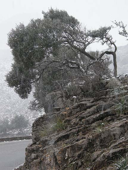 In Mallorca it snows once in twenty years, and this one caught us right in the mountains. The fine snow settling on the jagged rocks and graceful Mediterranean vegetation within minutes changed the mountain range into Chinese. If Wang Wei will not come to the Huangshan, the Huangshan will come to Wang Wei.