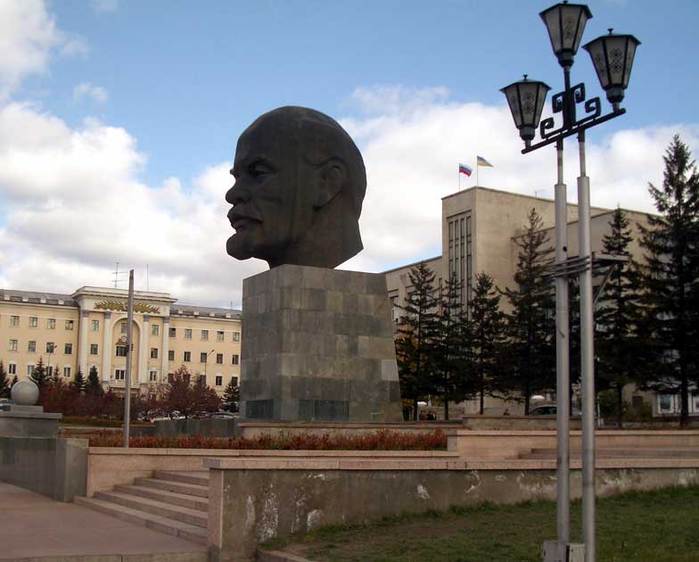 The “big head” was a typical genre of the iconography of Lenin, and a very practical one at that, because, on the principle of pars pro toto and by sparing remarkably much raw material and many working hours, it indicated how gigantic we should imagine the full statue represented by its mere head. Among the many well-known examples of the genre a 14 meters and 12 tons piece stands to this day not far from here, on the main square of Ulan-Ude in Buryatia, commonly called “the head” by the inhabitants of the city.