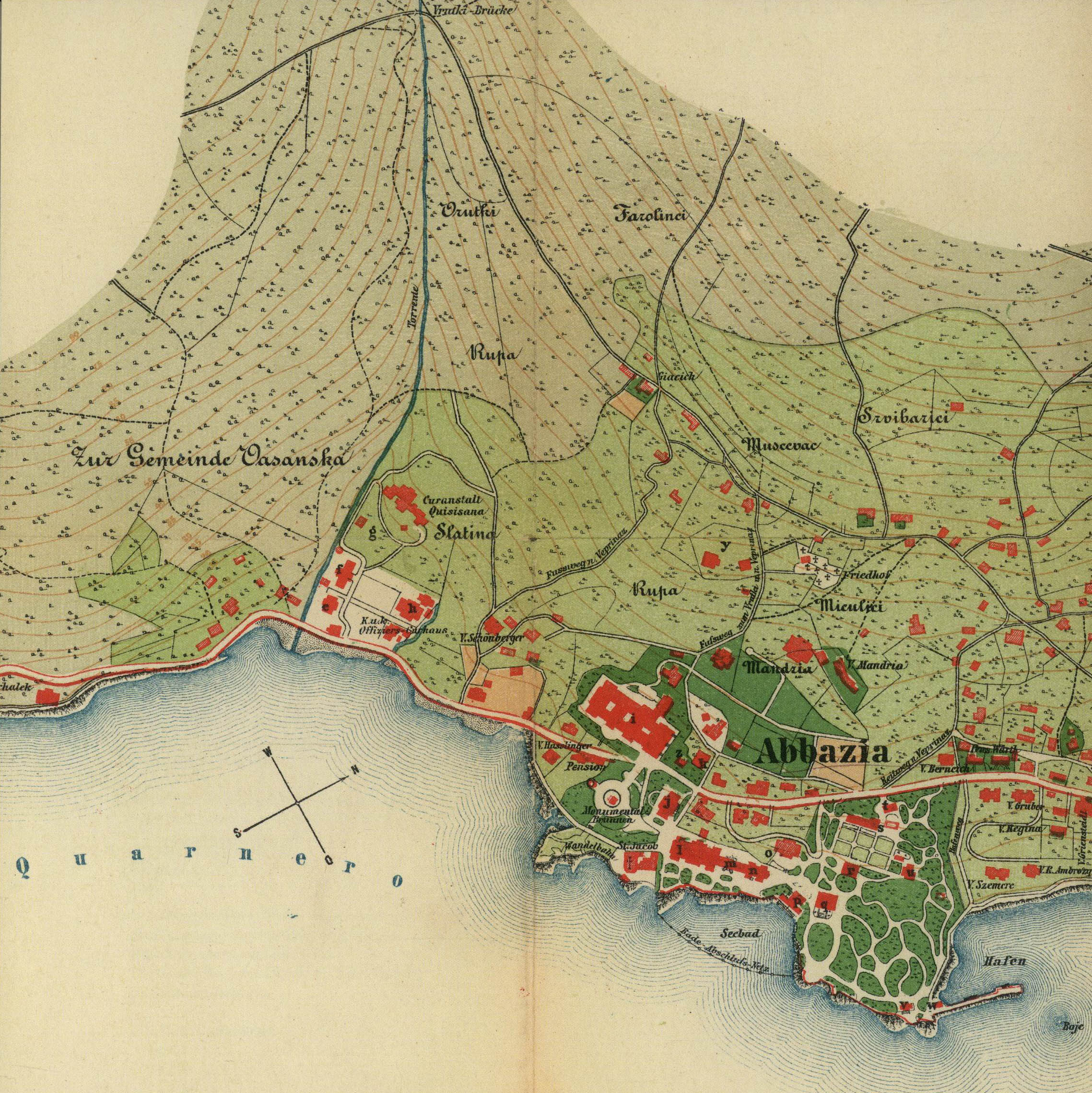 | Still a villa suburbana at the turn of the century (enlarge here), today at the corner of Veprinački put and ulica Joakima Rakovca. | Era aún una villa suburbana a la vuelta del siglo (ampliar plano), hoy languidece en la esquina del camino de Veprinac con la calle Joakim Rakovec. |